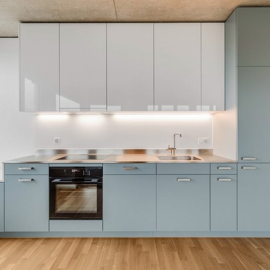 Einbauküche mit Glaskeramik-Kochfeld und Geschirrspüler